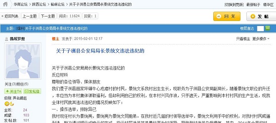 我們是子洲縣苗家坪鎮(zhèn)牛心疙瘩村的村民,景統(tǒng)文系我村出生生長,現(xiàn)職務為子洲縣公安局副局長,隨著景統(tǒng)文職位的升遷,本應當為本村集體謀取福利,但卻利用自己的權(quán)利,在本村興風作浪,只手遮天,嚴重影響到本村村民的生產(chǎn)生活,現(xiàn)我全體村民就其違法違紀的情況反映如下: