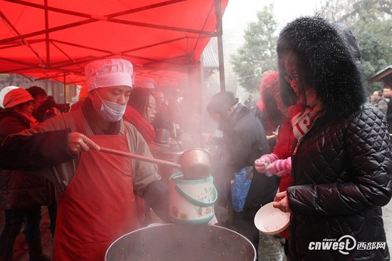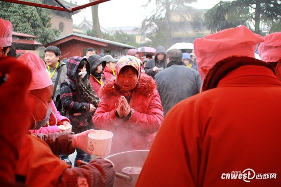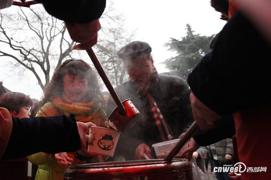西安大興善寺每年臘月初八,寺內(nèi)都會(huì)施粥,大家認(rèn)為吃了可以得到佛陀保佑,所以稱它“佛粥”。寺內(nèi)的僧執(zhí)說,每年都有許多人專門奔“粥”而來。