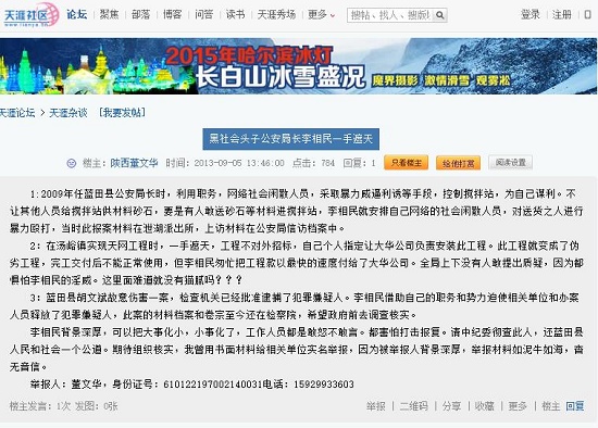 據(jù)新浪微博爆料:【曾經(jīng)的民警實(shí)名舉報(bào)西安公安現(xiàn)任地鐵分局局長(zhǎng)】原西安藍(lán)田縣公安局民警董文華因自身一起打架斗毆事件被單位處理,離開警隊(duì)后開始實(shí)名舉報(bào)原藍(lán)田公安局長(zhǎng){李相民}現(xiàn)任西安地鐵分局局長(zhǎng),據(jù)舉報(bào)人董文華說:舉報(bào)后西安公安紀(jì)委也介入調(diào)查了,不見處理結(jié)果只見高升,本人和李相民局長(zhǎng)聯(lián)系上后遭拉黑。