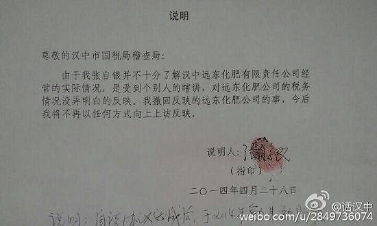 2013年,漢中市質(zhì)監(jiān)局就此事出具了相關(guān)報(bào)告。2014年5月,漢中市國(guó)稅局在審理案件時(shí)依據(jù)漢中市質(zhì)監(jiān)局報(bào)告,擬決定暫不追究遠(yuǎn)東公司之責(zé)任。