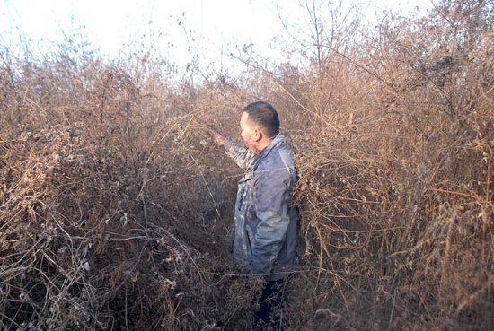 記者在現(xiàn)場看到,進韓麻村西大門靠村門樓道路兩旁確實閑置了兩大塊土地,隨同的村民李衛(wèi)斌一走進地里就長跪在那里不愿意起來,經再三勸說,他才勉強的站了起來,并氣憤地告訴記者:“你看這草都長一人多高了,閑置了兩年多太可惜,我這樣做是被逼的、氣的,希望村上能把這些土地分給村民們”。