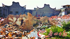 位于福建省福州市倉(cāng)山區(qū)城門鎮(zhèn)的臚雷村地處城鄉(xiāng)結(jié)合部,本是這一帶很富足的大村莊。這個(gè)村莊歷史悠久,人才輩出。它的后代里最出名的有數(shù)學(xué)家陳景潤(rùn)、海軍上將陳紹寬。因?yàn)榛疖囌靖V菡镜慕ㄔO(shè),臚雷村被征地拆遷,考察隊(duì)員看到,全村幾乎都被拆完了。村莊滿目瘡痍,遍地都是瓦礫磚石。面前就是福州火車站。當(dāng)?shù)卣呀?jīng)把祠堂連同村莊賣給了房地產(chǎn)公司。