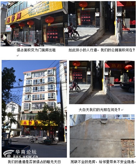 5.由于劉風(fēng)鑫2013.7.11號親筆協(xié)議所承諾,“以上協(xié)議如果甲方不按時執(zhí)行,乙方有權(quán)干預(yù)?!逼湫聵欠恳宦凤j升,至到出租,出售( 除了一二層劉做為門面房出租其余全部售完)新來的住戶給本來就窄小的公用通道帶來物業(yè) 、采光、遮蔭、消防、防洪等隱患,找到劉夫婦時,劉夫婦一個口徑,“補(bǔ)償遮蔭可以,但給錢了,你不許再告我?!辈ξ胰鐚嵎从炒耸鹿⒐⒂趹眩羰蛊浒軇鴱?qiáng)(農(nóng)民,看場人)拿著2.5米的鋼管揚言“打死你這個老雜種!”(現(xiàn)鋼管存放于商南縣派出所110指揮部)現(xiàn)經(jīng)縣國土局,法院調(diào)解,又提出補(bǔ)償遮陰費可以,但讓我允諾讓其在違法建筑上再加蓋二層,尊敬的領(lǐng)導(dǎo)們,正義的記者們,請你們想一想,評論一下,這是一個什么品質(zhì)的人,究竟是國大還是權(quán)大,是法律尊嚴(yán),還是由于此人由于享受副縣級待遇,商南縣委、政府、人大就管不了?還是那句話。在省.6月份巡視商南工作期間,我為了顧全商南政府影響,未將劉的這些行徑向省.反映,成了劉諷刺我的話柄,縣紀(jì)委書記崔偉峰接到舉報,曾責(zé)令縣國土局組織調(diào)查,國土局以(2014)151號文件曾上報紀(jì)委,不知何故,一直無果,難道沒有天理了?沒有國法了嗎?