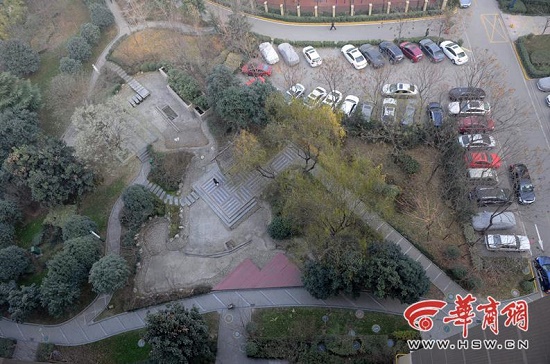 上午10時,華商報記者在該小區(qū)6號樓前看到,這里是一大片綠化區(qū)域,有樹木、草坪、干涸的噴泉池和亭臺,兩位老人正在綠地里鍛煉身體,緊鄰的是小區(qū)內(nèi)的小學圍墻。