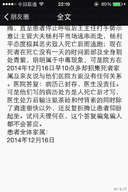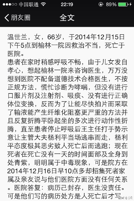 據(jù)新浪微博爆料:【因救治不當(dāng)榆林一院一患者死亡】因救治不當(dāng),榆林一院一患者死亡,主治大夫逃離,院方造假病歷。