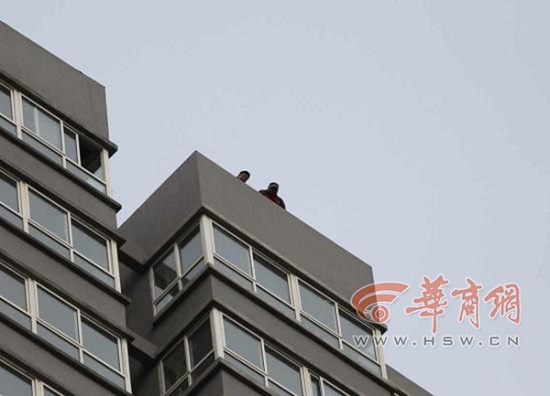 這些業(yè)主是無奈且憤怒的。在這種情緒的支撐下,他們爬上了樓頂,說是要跳樓。12月15日上午11時許,40多名業(yè)主爬上了西安市西斜三路上的豐樂佳苑小區(qū)8號樓32層高的樓頂。