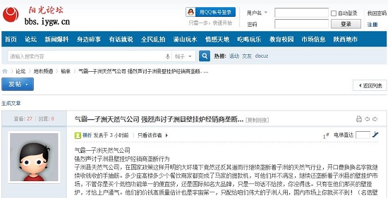 子洲縣天然氣公司,在國家政策這樣開明的大環(huán)境下競然還反其道而行繼續(xù)壟斷著子洲的天然氣行業(yè),開口費換換名字就繼續(xù)收錢收的手抽筋。多少座高樓多少個餐飲商家都變成了馬家的提款機,可他們并不滿足,繼續(xù)還壟斷著子洲縣的壁掛爐市場,不管你是買個低檔功能單一的便宜貨,還是國際知名大品牌,只是一句話不給按,你沒得選。只有在他們那買的壁掛爐,才給上戶通氣。他們的價錢高質量估計也是宇宙第一,只配給咱們偉大的子洲人用,國內市場上你就買不到?。疟趻鞝t產(chǎn)地陜西興平估計是特供商品只有天然氣公司有),管件也不附帶,幾個小管件,要價幾百元,而且產(chǎn)品種類也相對減少,只有兩個牌子。你愛買不買,就這個價,一分錢也不少。要買先按標價去交齊費用,然后才給你安裝。你還沒辦法,要不天然氣公司就不給上戶通氣。整個就一壟斷行業(yè),難道外面買回來的壁掛爐就不是壁掛爐,人家國家名牌、世界名牌不如你們賣的那兩個名不見經(jīng)傳的低檔貨嗎?你們的理由說不安全,那么就你們那里賣的興平、韓國產(chǎn)的組裝貨就最好,這連強大的淘寶競然搜不到你們賣的明信爐,大宇也只有寥寥兩款,你們就是特么這樣關心子洲老百姓?