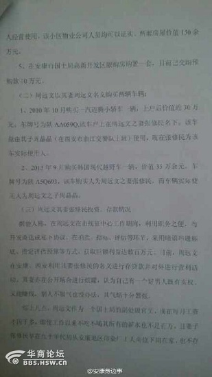 安康市國土局統(tǒng)征中心副主任周某,利用妻子張某進行拉托受賄,購置多處房產(chǎn)與高檔汽車。其中:安康房產(chǎn)三處,西安房產(chǎn)三處,高檔汽車兩輛。據(jù)稱,周某在工作期間,用職務(wù)之便與開發(fā)商達成協(xié)議,用串通,指定評估預(yù)算等方式,獲取巨額利益。其妻曾公開炫耀其夫權(quán)力與財富!