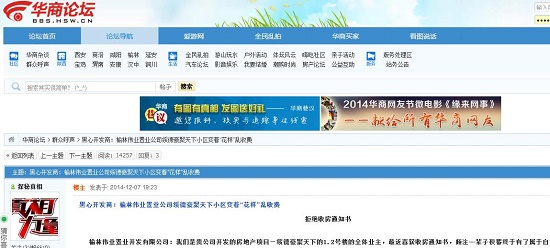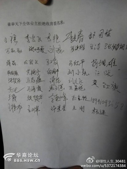 榆林偉業(yè)置業(yè)開發(fā)有限公司:我們是貴公司開發(fā)的房地產(chǎn)項目—綏德豪聚天下的1.2號樓的全體業(yè)主,最近喜獲收房通知書,傾注一輩子積蓄終于有了屬于自己的家,我們懷著萬分激動、喜悅與期待12月5-10日趕往收房。而我們豪聚天下開發(fā)者--貴公司卻給了我們一個意想不到的“驚喜”:每個業(yè)主要在原來住房面積的基礎(chǔ)上公攤3%的小區(qū)院子面積,稱的上是中國有商品房誕生以來最大奇葩,完全可以收錄中國商品房史冊。而且房屋結(jié)構(gòu)與售樓處的模具和實物展示嚴重不符。并且國家規(guī)定的收房必須出具的相關(guān)文件都沒有。我們無比心寒,痛徹心扉。我們無法接受這突如其來的“驚喜”,試圖向貴公司尋找答案,但卻得到貴公司諸多無理無賴甚至荒謬的答復(fù)。我們已出奇憤怒,是可忍孰不可忍。為此,我們豪聚天下2棟業(yè)主特集體聯(lián)名向貴公司發(fā)出此拒絕接收房屋通知書,理由如下: