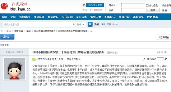父母官本該為人民服務(wù),但是卻利用職務(wù)之便,用村主任信譽、串通該村會計思作山、勾結(jié)神木地痞秦宇,坑壑一氣。非法集資波羅鎮(zhèn)各村村民用血汗錢,供孩子們上學(xué)的錢,被其用集資公司的幌子循循善誘蠱惑走,據(jù)初步保守統(tǒng)計以欠債務(wù)達(dá)上千萬。