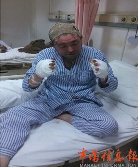 在陜西省人民醫(yī)院創(chuàng)傷科,安裝工劉某告訴記者,11月9日下午兩點(diǎn)半左右,自己和搭檔張某結(jié)束了工作,路過甘某家,被甘某要求調(diào)試自家已裝好的壁掛爐,因甘某家的壁掛爐是劉某供職公司的“冠霸”品牌,所以在老板謝某的要求下,幫忙進(jìn)行了調(diào)試。“壁掛爐原本是誰安裝誰負(fù)責(zé)調(diào)試,只因這個是我們公司的爐子,老板又打電話要求我們給調(diào)試,我們就做了,爐子是其他人安裝的。在調(diào)試過程中,爐內(nèi)的噴氣嘴突然噴出一股大火,把我們在場的5人面部及上衣燒了,那個場面至今難忘”。