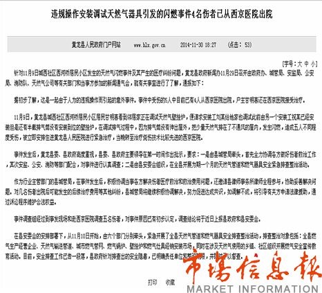 就此事,本報記者采訪了黃龍縣委宣傳部王副部長,據(jù)王副部長介紹,天然氣調(diào)試中閃燃一事還要等權(quán)威部門的鑒定結(jié)果,結(jié)果出來后才能分清是誰的責(zé)任,“這不是網(wǎng)上說的政府行為,純屬商業(yè)行為”。