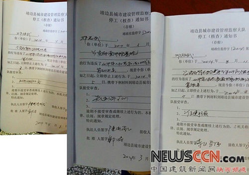 記者在該中隊提供的停工通知書上到,靖邊縣城市建設(shè)管理監(jiān)察大隊于分別于今年3月5日、4月2日和8月11日,向陜西玉璽房地產(chǎn)開發(fā)有限公司法人鄧治武下發(fā)了停工(核查)通知書。但從項目4月份開工至今,這種明停暗動、打游擊戰(zhàn)的施工方式卻從未停過,就連執(zhí)法人員都感到頭疼。
