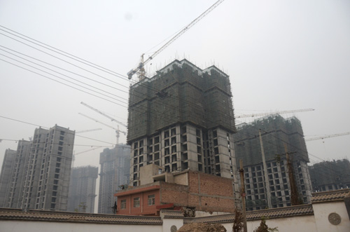村民所指村長(zhǎng)占用集體耕地私建的小產(chǎn)權(quán)樓主體已經(jīng)完工,初步測(cè)算已有26層