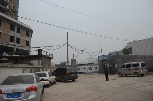 村民所指村長(zhǎng)占用集體耕地私建的小產(chǎn)權(quán)樓,大門緊鎖,大門清晰地寫著“未央城改”等字樣
