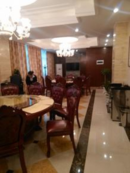 廚房僅隔壁就是一樓的包間,大概有六七十平米的樣子,包間內(nèi)兩名身著制服的服務(wù)員正在打掃衛(wèi)生。里面擺放著兩個(gè)大圓桌,每個(gè)桌子可以坐8-10人;包間內(nèi)設(shè)衛(wèi)生間和一個(gè)木質(zhì)茶桌、一套茶具以及四把椅子。包間內(nèi)的設(shè)備還有:餐具柜、電視、空調(diào)、衣架……天花板上的歐式8頭吊燈顯得格外耀眼,再配上“小星星”節(jié)能燈,有星級(jí)酒店一般的派頭。記者看到,僅廚房和包間就占據(jù)了整個(gè)一樓200多平米的面積。