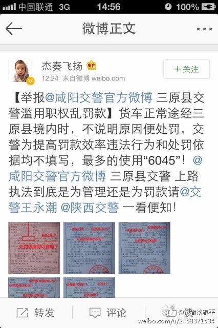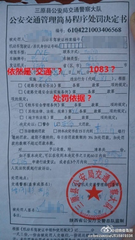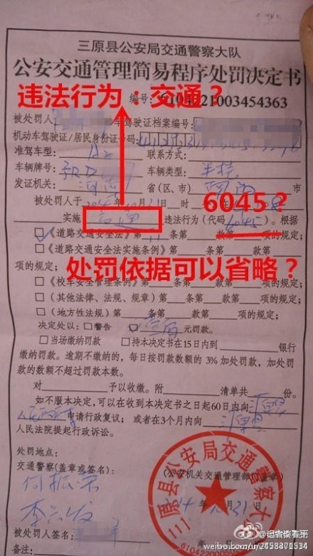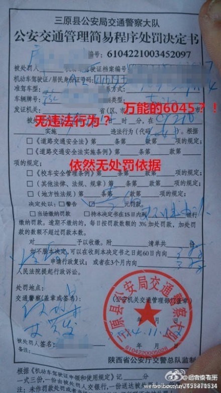 有網(wǎng)友實(shí)名舉報(bào):貨車正常途經(jīng)三原縣境內(nèi)時(shí),不說明原因便處罰,交警為提高罰款效率違法行為和處罰依據(jù)均不填寫,最多的使用“6045”!網(wǎng)友質(zhì)疑三原縣交警上路執(zhí)法到底是為管理還是為罰款?請@陜西交警@咸陽交警官方微博調(diào)查事實(shí)真相并公布處理結(jié)果!