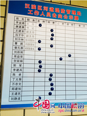 漢濱區(qū)河道管理處單位工作人員去向牌