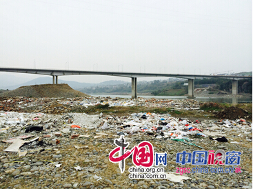 漢江二橋下生活垃圾及一些粉狀的棄渣現(xiàn)場
