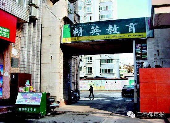 接到群眾的反映后,記者到勉縣實(shí)地采訪,果然看到街道上樹立的“精英教育”的廣告牌,而在其租賃的教學(xué)樓前懸掛著“歡迎家長和學(xué)子們前來免費(fèi)試聽秋季課程”的紅色標(biāo)語,在教學(xué)樓院內(nèi),正面一堵墻上,寫滿了精英教育的簡介、教學(xué)理念和師資力量。但是,從地面通往三樓的旋轉(zhuǎn)式樓梯“學(xué)生通道”和“家長通道”是由鋼板和鐵欄桿組成,比較簡陋,通常學(xué)生都是利用晚上課余時間到這兒補(bǔ)課學(xué)習(xí),上下樓不太方便,且存在著一定的安全隱患。