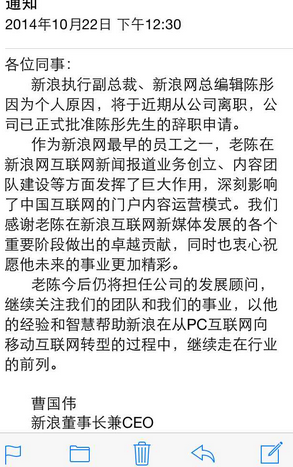 新浪董事長兼CEO曹國偉的內(nèi)部郵件