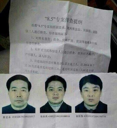 排查提綱共有5點。提綱稱,對所有房屋、院舍、廢棄廠房、窯洞等能藏身的地方進行排查;對所有居民和暫住人員進行排查,坐到村不漏戶,戶不漏人、逐人排查;詳細詢問排查對象是否認識上述三人;在2014年7月26日后是否見到過這三人,是否聽到過該三人蹤跡并順線追查到底;排查情況按排查要求詳細填寫;發(fā)現(xiàn)重大情況及時上報指揮部。