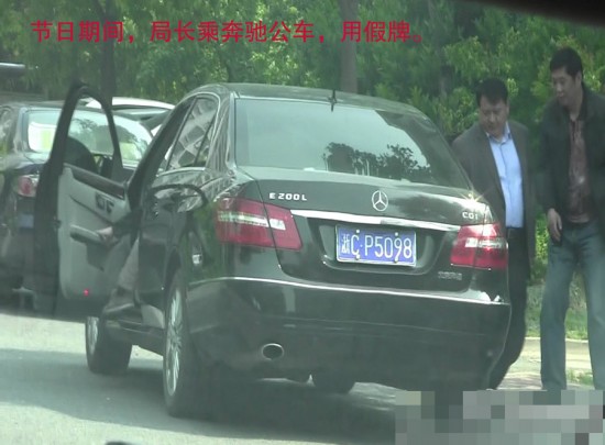 圖中文字為:節(jié)日期間,局長乘奔馳公車,用假牌。