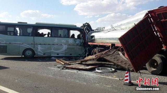 據(jù)甘肅省政府應(yīng)急辦通報,新疆四平商貿(mào)有限公司一輛大型客車,行駛至甘肅省酒泉市瓜州縣境內(nèi)時,突然沖撞中央隔離帶,駛?cè)雽ο蜍嚨?,與對向行駛的一輛河北牌照的重型半掛車正面相撞,造成13人死亡、6人重傷、44人輕傷。