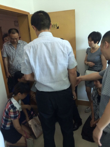 23日上午9時40分許,在接待家長大約1個小時之后,雷國林要去南充市政府參加一個定于10時召開的會議。他向在場家長說明情況準備離開時,三四名情緒激動的女性家長,突然跪在辦公室門口,不讓其出門。