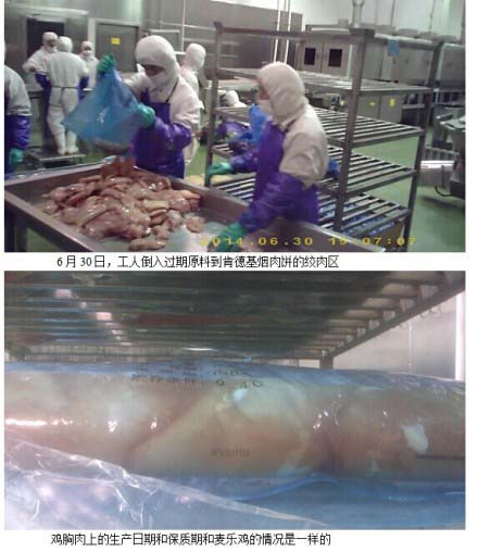 2014年6月18日,18噸過(guò)期半個(gè)月的冰鮮雞皮和雞胸肉被摻入原料當(dāng)中,制成黃燦燦的“麥樂(lè)雞”。記者還稱,這些過(guò)期雞肉原料被優(yōu)先安排在中國(guó)使用。