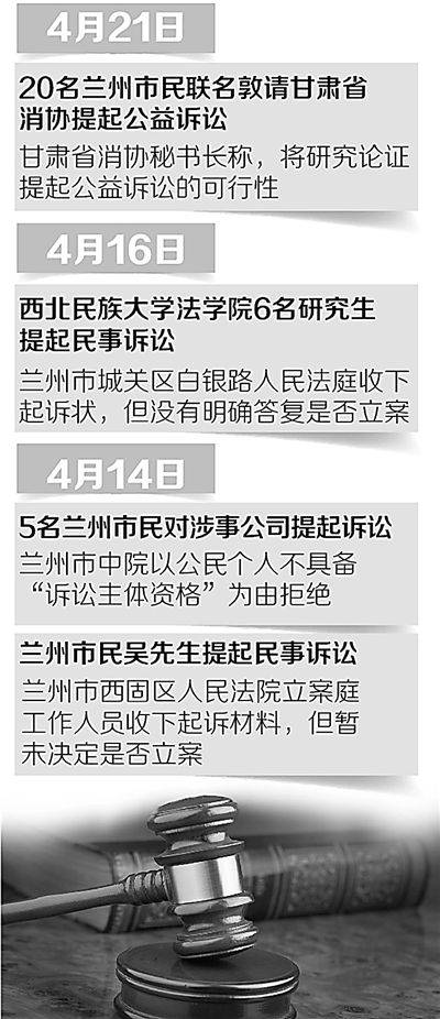 繼蘭州市民、高校學生向蘭州市各級法院提出民事訴訟后,4月21日,蘭州市20名市民聯(lián)名向甘肅省消費者協(xié)會投訴蘭州威立雅水務(wù)公司,要求該公司履行約定義務(wù),公開事件相關(guān)信息,進行物質(zhì)損失和精神損害賠償,并聯(lián)名敦請甘肅省消費者協(xié)會對蘭州自來水苯污染事件提起公益訴訟,維護廣大消費者的合法權(quán)益。