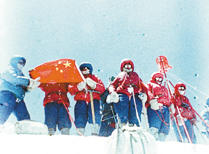 1975年5月27日,潘多成為世界上首位從珠峰北坡登頂?shù)呐?。新華社發(fā)