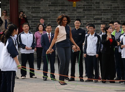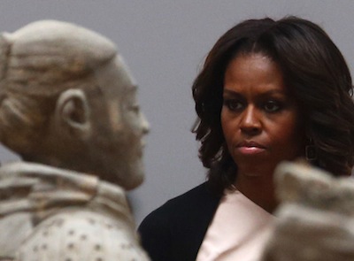 應(yīng)國(guó)家主席習(xí)近平夫人彭麗媛邀請(qǐng),美國(guó)總統(tǒng)奧巴馬夫人米歇爾·奧巴馬以及米歇爾的母親和兩個(gè)女兒昨日從北京抵達(dá)西安參觀了兵馬俑,在短短的一個(gè)多小時(shí)里,米歇爾一行領(lǐng)略2000多年前威武浩蕩的秦俑軍陣,與中國(guó)歷史文化“零距離”接觸。隨后,她們游覽了西安城墻。