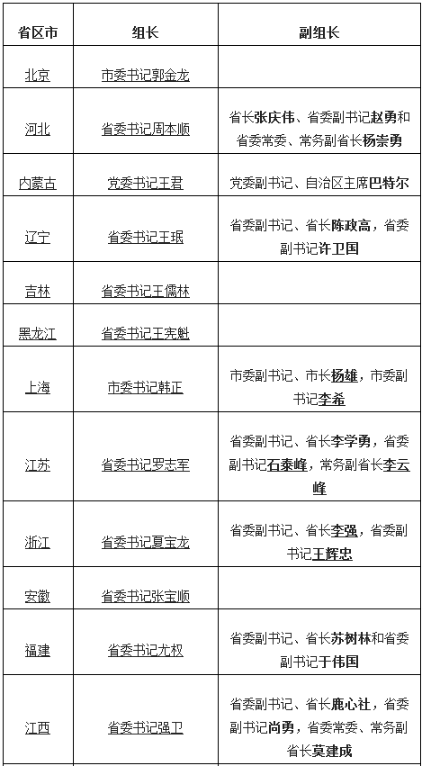 根據(jù)公開資料統(tǒng)計,截止2014年2月27日,全國31省份全部成立全面深化改革領(lǐng)導(dǎo)小組,小組組長均為黨委“一把手”(本頁面持續(xù)更新中)。