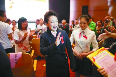 今年12月1日“世界艾滋病日”,彭麗媛在活動(dòng)現(xiàn)場與大學(xué)生志愿者交流。
