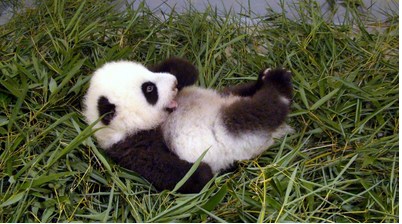 園方紀錄圓仔手腳擺動,翻身的模樣超可愛。另外在美國亞特蘭大,也有一對和圓仔差不多大的大熊貓雙胞胎,兩只長得太像了,常常讓保育員分不出來誰是誰,很頭痛。