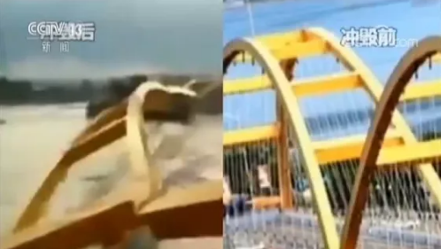 另一段視頻則呈現(xiàn)了帕盧標志性的跨海大橋被沖垮,斷成數(shù)段橫在海中央。