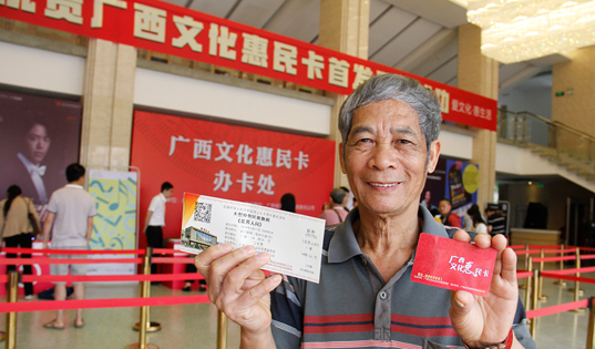 南寧市民朱華春領(lǐng)到第一張廣西文化惠民卡