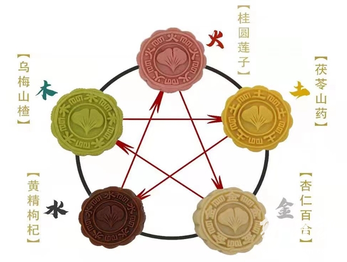 陜西省中醫(yī)藥發(fā)展服務(wù)中心常務(wù)副主任、主任藥師、國家中藥特色技術(shù)傳承人劉軍鋒介紹,陜西省中醫(yī)藥研究院、陜西省中醫(yī)醫(yī)院推出的養(yǎng)生保健月餅“杏林五行月餅”,包含了代表“木”的烏梅山楂餡兒月餅,可以平肝和胃、生津止渴;代表“火”的桂圓蓮子餡兒月餅,可以補(bǔ)益心脾、養(yǎng)心安寧;代表“土”的茯苓山藥餡兒,可以健脾補(bǔ)肺、和胃化濕;代表“金”的杏仁百合餡兒,可以養(yǎng)陰潤肺降氣平喘;代表“水”的黃精枸杞,補(bǔ)腎益氣養(yǎng)肝明目。