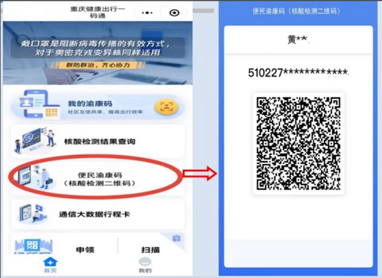 申領(lǐng)、查詢(xún)“便民渝康碼”示意圖。重慶市大數(shù)據(jù)管理局供圖