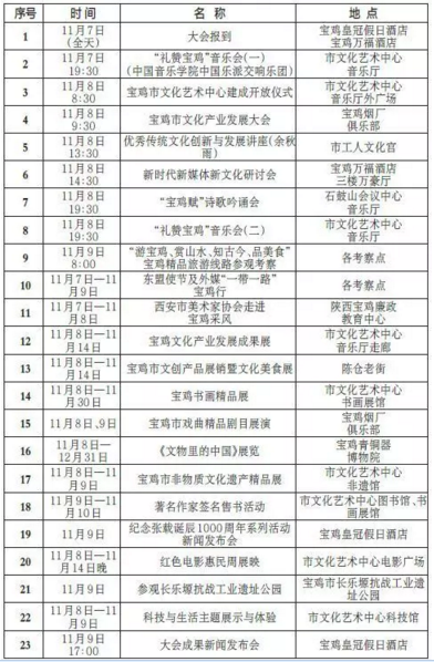 寶雞市文化產(chǎn)業(yè)發(fā)展大會(huì)活動(dòng)日程安排