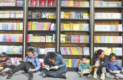 2019天府書展上,家長和孩子們席地而坐閱讀書籍。記者李向雨攝
