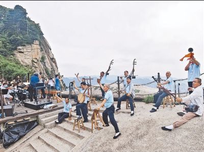 圖為華陰老腔和西安交響樂團(tuán)協(xié)奏曲《將令一聲震山川》排練現(xiàn)場。張 杰攝(人民視覺)