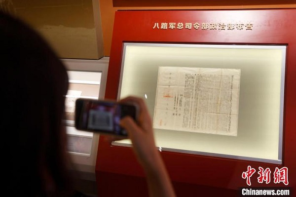 7月7日,國(guó)內(nèi)60家主題紀(jì)念(博物)館共同推出的“中流砥柱——中國(guó)共產(chǎn)黨抗戰(zhàn)文物專(zhuān)題展”對(duì)外開(kāi)放。 富田 攝