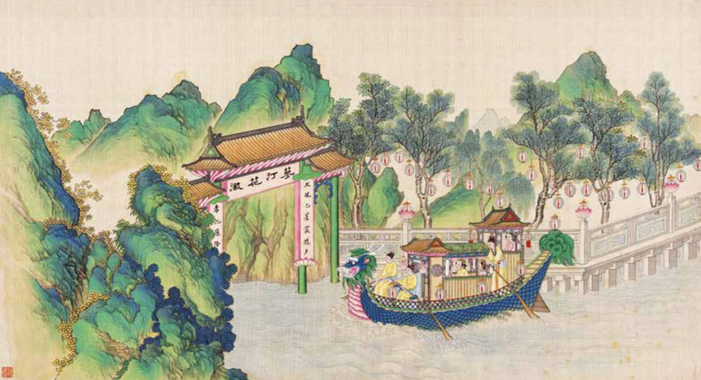 透過明暗對(duì)比、虛實(shí)交映、散點(diǎn)透視等法則,格外凸顯了人物之鮮明、花樹之豐富、樓閣之華美、珍禽走獸之靈動(dòng)、舟車轎輿之精致、鬼怪神仙之玄幻。