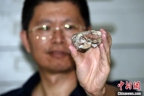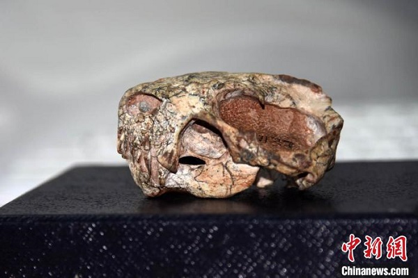 中國(guó)首次發(fā)現(xiàn)的“真錢伯獸”化石標(biāo)本。 中新社記者 孫自法 攝