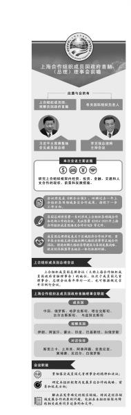 成員國政府首腦理事會(總理會議),是上海合作組織地位最高的兩個會議之一。今年7月,上海合作組織成員國元首理事會第十五次會議在俄羅斯烏法舉行??偫頃牡匚粌H次于國家元首理事會,總理會每年舉行一次,也可以根據(jù)規(guī)定召開非例行會議。