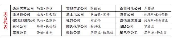 美方企業(yè)中,微軟、蘋果、思科、IBM、亞馬遜等5家科技互聯(lián)網(wǎng)公司的老總占了全部企業(yè)家的1/3。