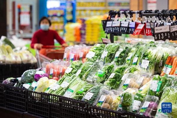 2022年1月12日,顧客在南京一家超市內(nèi)選購蔬菜。新華社發(fā)(蘇陽 攝)