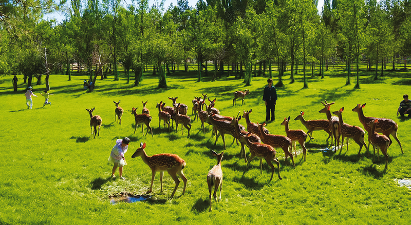 而在直線距離這里僅有三公里的中國森林體驗基地,當年曾是王有德帶領職工栽植的果園,如今已經(jīng)成了綠野仙蹤般的森林康養(yǎng)營地。幾十只梅花鹿穿梭在白色的帳篷與林蔭之間,與人嬉戲、逗玩。“當年栽植的果類品種退化后,管理局就進行了改造,也給靈武、寧夏兩地的市民增添了休閑場所?!备呖》逍χf,這是白芨灘管理局從“五位一體”向“六位一體”的轉(zhuǎn)換。